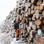 When the course day is over, we jump into Marcus’ car and bump up a steep forest road through snowy woodland. A deep pine forest is towering on both sides of the road. Along the road there are piles of large logs. ”We shall mark the logs for the next course. Handpicking logs is part of the luxury of cutting your own timber!